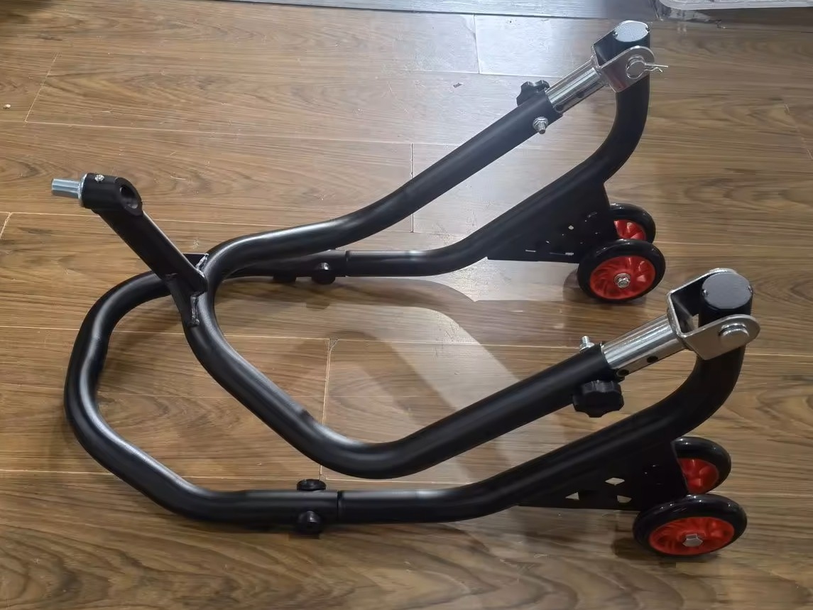Great quality adjustable height head lift stand with 4.25" quad wheels for incredible stability. All front stands comes with multiple pins to fit pretty much all models. Standard pin diameters INCLUDED are 13, 15, 16.5, 17, 18, 21, 23, 24, and 27 mm.