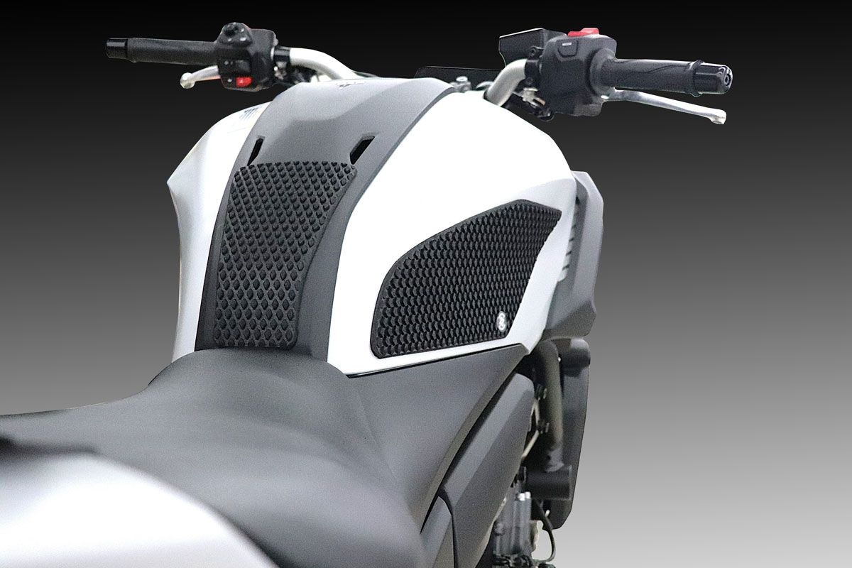 Snake Skin is a thin (3.2 mm) tank grip with a low profile diamond pattern. With these rubber padding properties, you will feel a positive grip into your tank and less pressure on your wrists, elbows and shoulders. Excellent product for all riders and uses our "Releasable Adhesive."This is the most popular material with great grip and an attractive appearance.